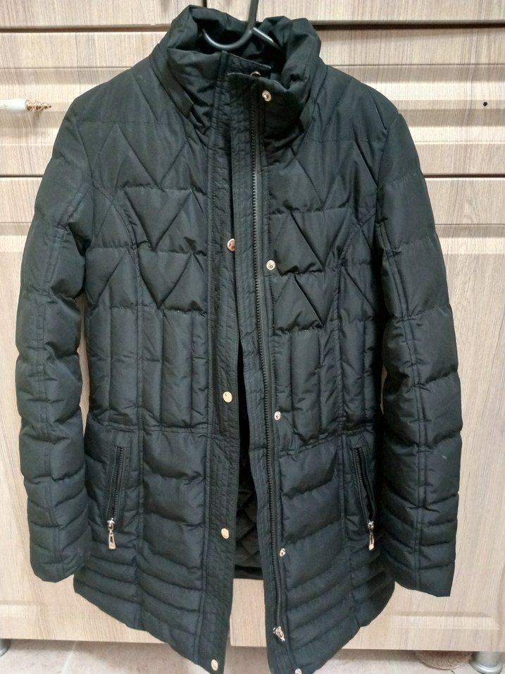 Düğmeli Siyah Kadın Kışlık Mont
