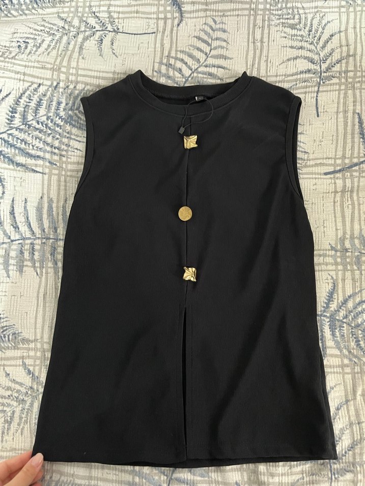 Düğmeli Siyah Kadın Kolsuz Yelek