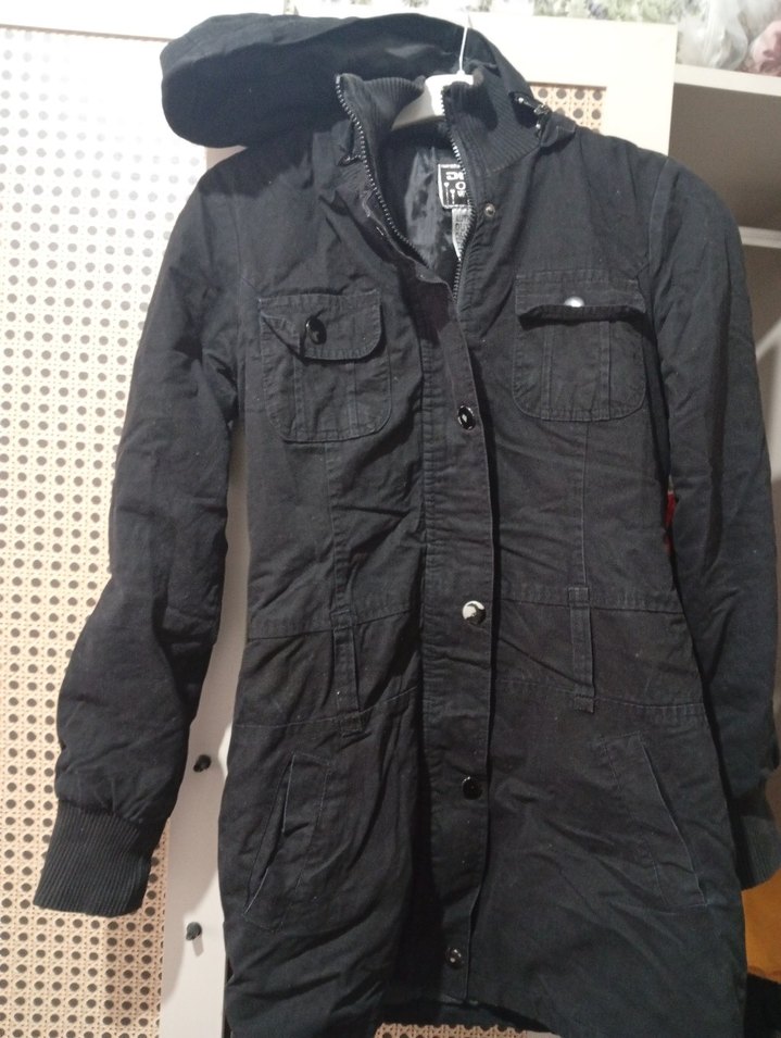 Düğmeli, siyah kot kumaştan, uzun kollu ve cepli, günlük sokak stiline uygun dar kesim kadın ceket.