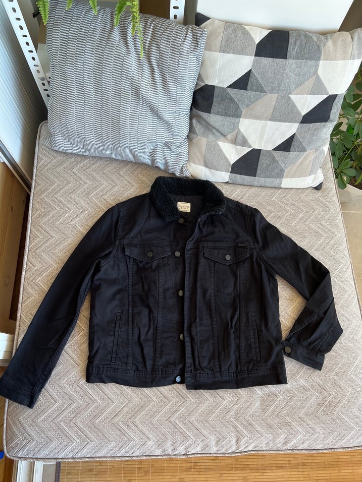 Siyah kot ceketi, notlu yaka ve uzun kolludur. Düğmeli ve iki göğüs cebi bulunur, günlük rahat kullanıma uygundur.
