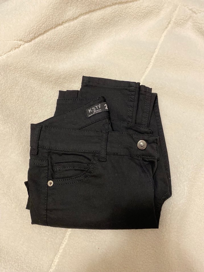 Düğmeli, baskılı siyah kot pantolon. KDS Jeans Orta boy midi uzunluğunda, günlük rahat ve sokak stili için uygun, dar kesim. hiç giyilmemiş sadece etiketi yok