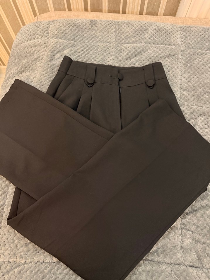 Düğmeli siyah Kadın Kumaş Pantolon