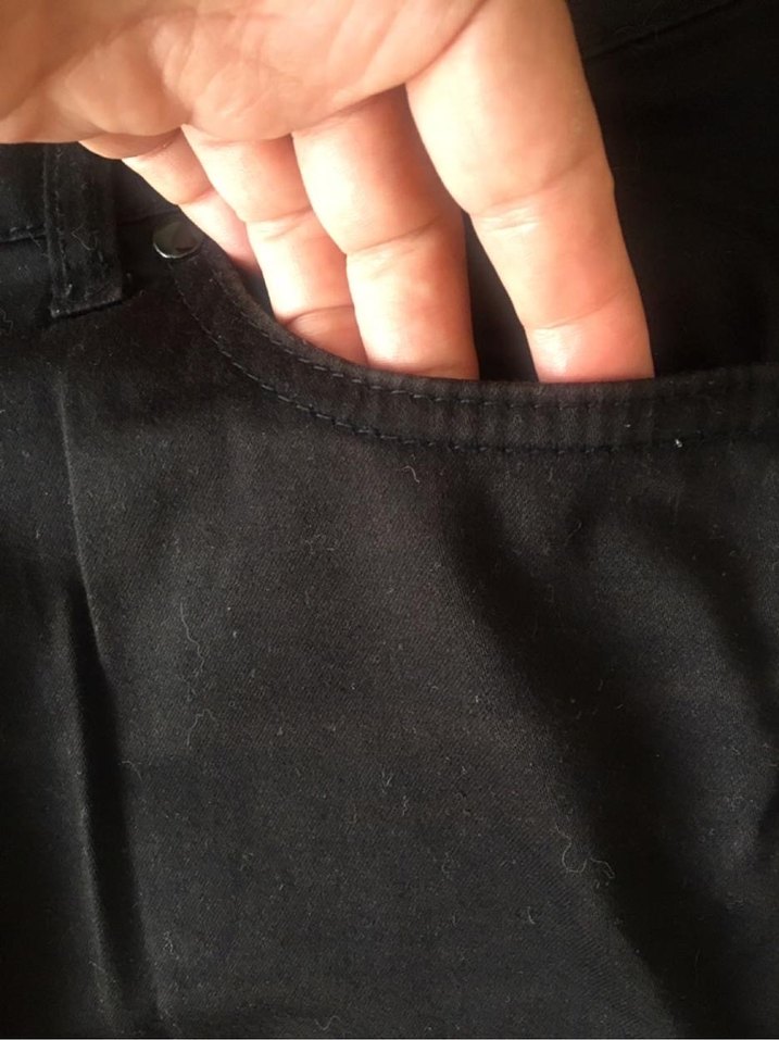 Düğmeli, midi boy, düz siyah kumaş pantolon. Minimalist gotik tarzda, günlük kullanıma uygun şık bir model.