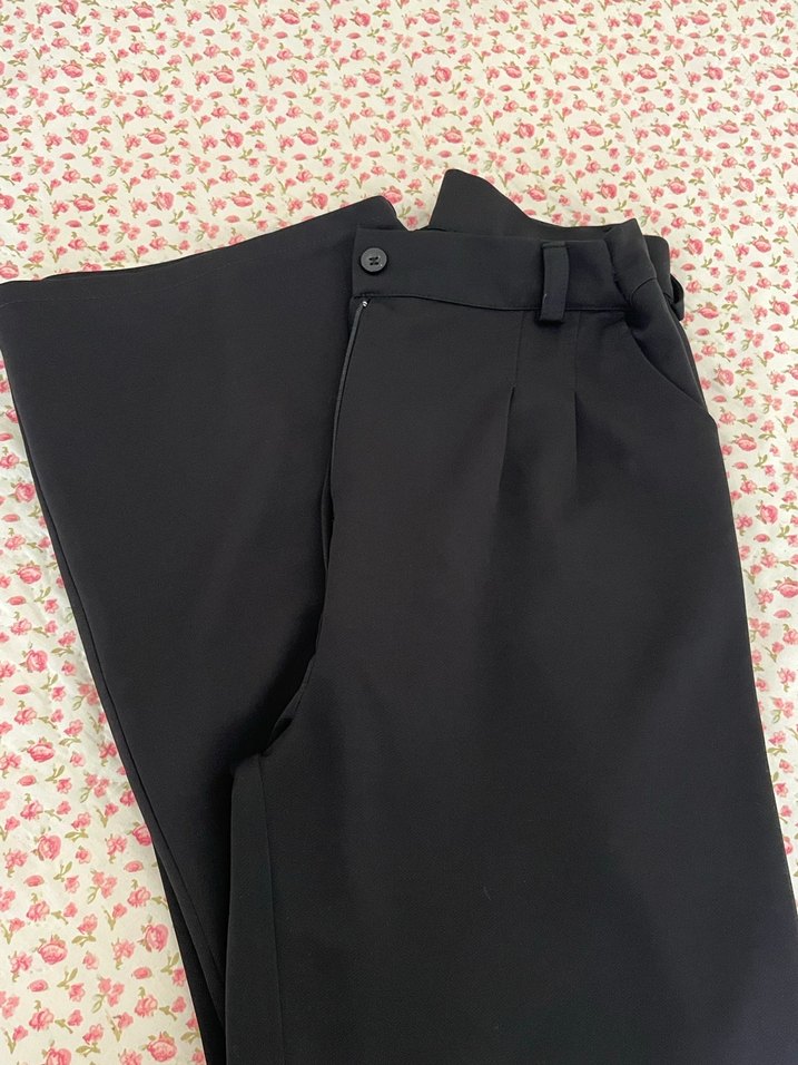 Düğmeli Siyah Kadın Kumaş Pantolon