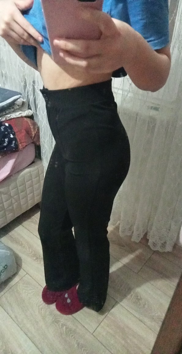 Düğmeli ve normal boyda, düz siyah kumaş pantolon. Sentetik, rahat kumaştan üretilmiş, günlük kullanıma uygun. sadece 1 kere giyildi yeni
