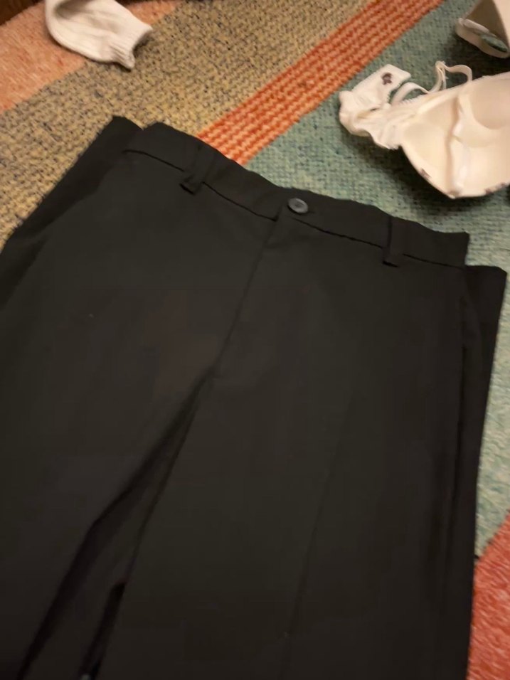 Düğmeli, midi boy, regular fit siyah kadın kumaş pantolon, ofis kullanımı için uygun, düz dokulu.