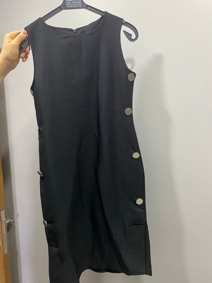 Düğmeli Siyah Kadın Kumaş Tulum