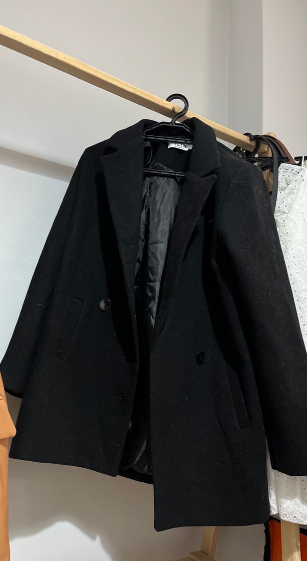 Düğmeli, siyah renkli kadın midi blazer ceket. Normal uzunlukta, uzun kollu ve regular fit kesimdir. Sentetik kumaştan üretilmiştir.