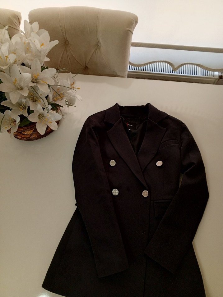 Düğmeli Siyah Kadın Midi Blazer Ceket