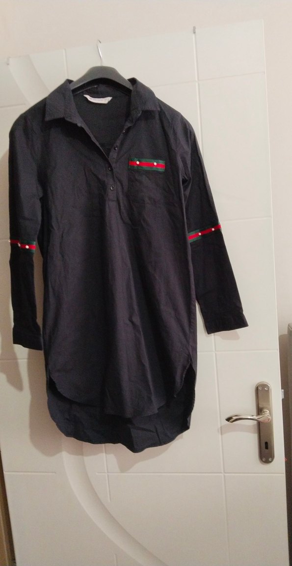 Siyah pamuk gömlek, uzun kollu, yakalı ve düğmeli. Göğüs cebinde ve kollarda işlemeli detaylar bulunur, günlük rahat kullanım için regular fit.