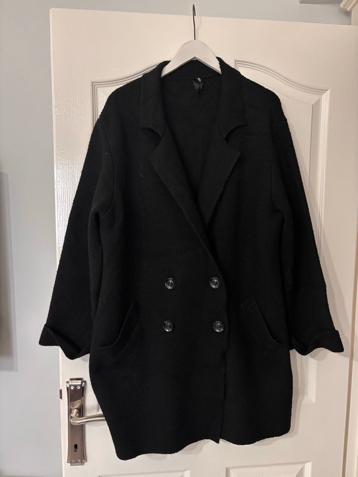 Düğmeli Siyah Kadın Midi hırka kaban