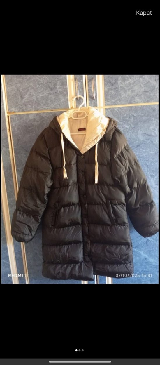 Düğmeli, siyah kadın kış montu, sıcak tüylü kumaştan, midi boyda ve uzun kolludur. Salaş kesimi ve kesik yaka detayıyla günlük kullanıma uygundur.