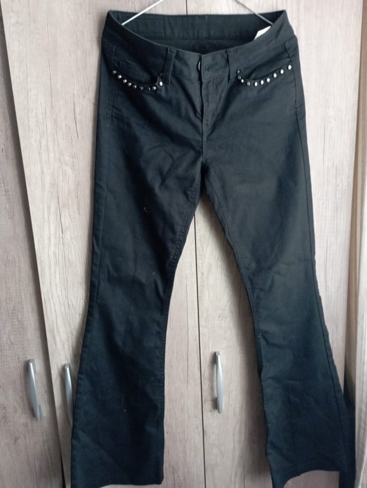Düğmeli, cep kenarlarında perçin detaylı siyah midi uzunlukta kadın kot pantolon. Rahat kesimiyle günlük kullanıma uygundur.