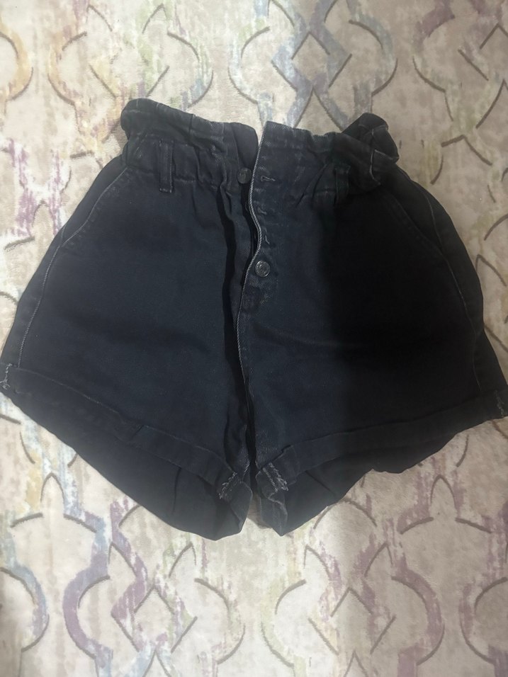 Düğmeli Siyah Kadın Mini Denim Şort