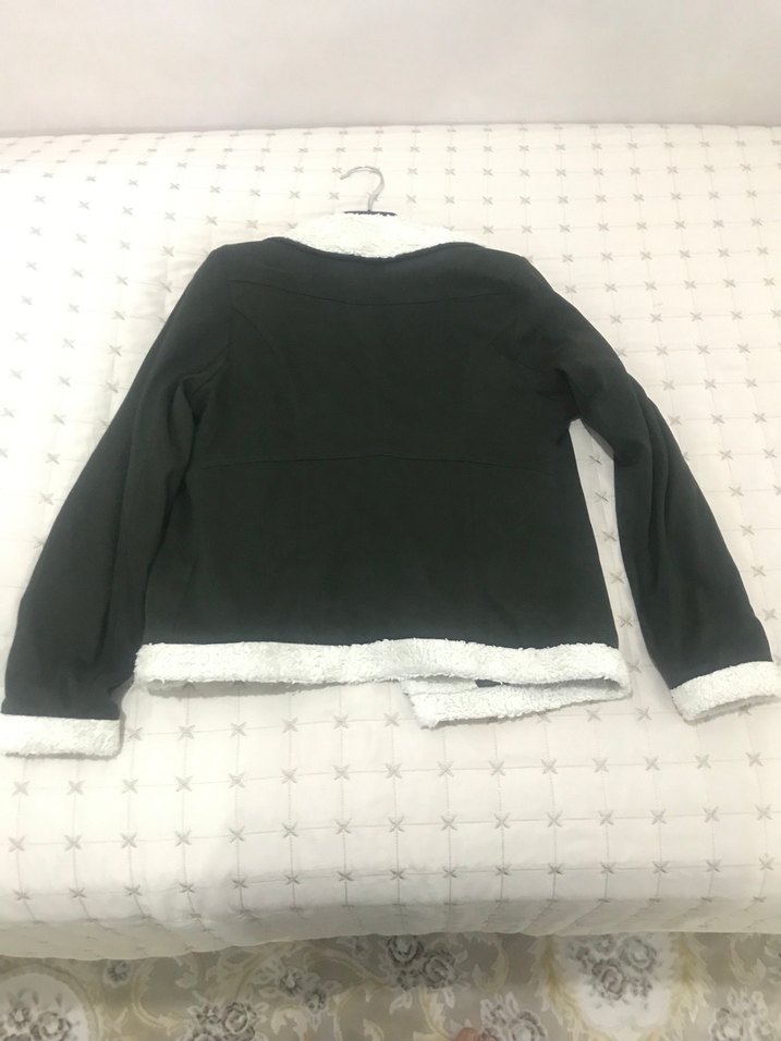 Düğmeli, uzun kollu, bisiklet yaka siyah kadın polar ceket. Rahat kesimi ve beyaz detaylı manşet ile günlük kullanıma uygundur.