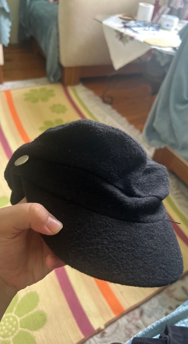 Düğmeli tasarıma sahip siyah kadın şapkası, yumuşak ve sıcak kumaştan üretilmiştir. Avant-garde stiliyle trend belirleyicilere uygun, rahat ve şık bir görünüm sunar.