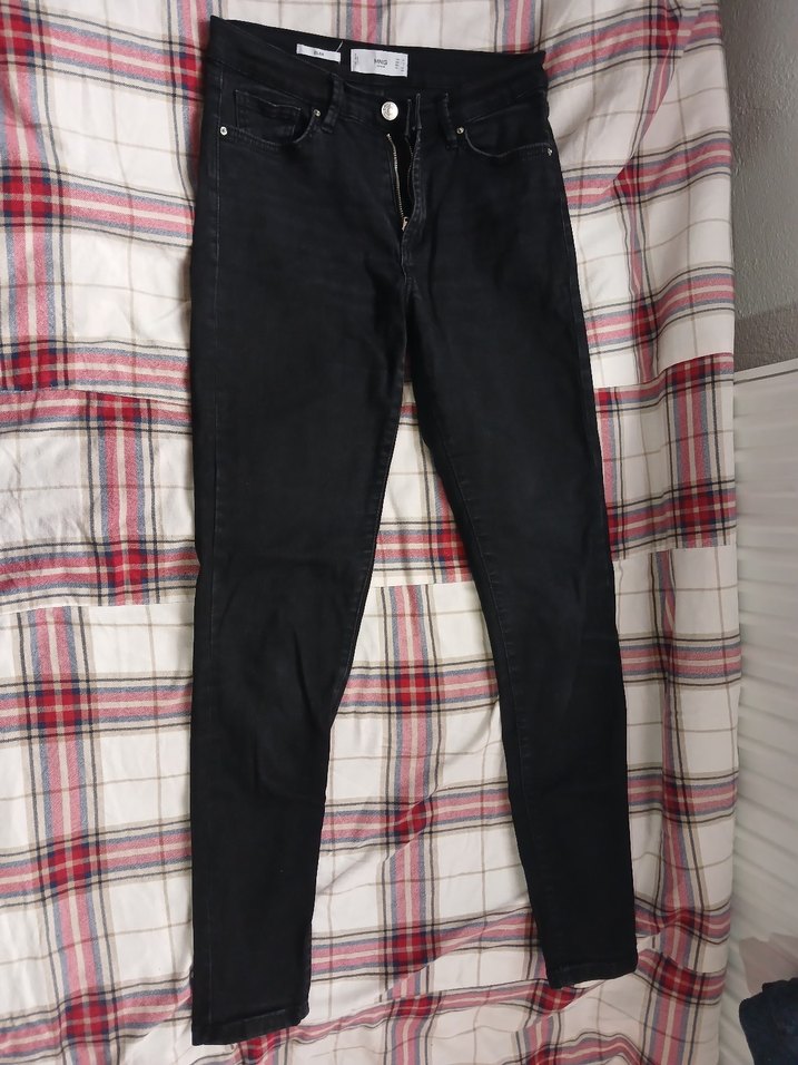 Düğmeli, siyah renkli, dar kesim midi boy kadın kot pantolon. Günlük sokak stiline uygun rahat bir seçenek.