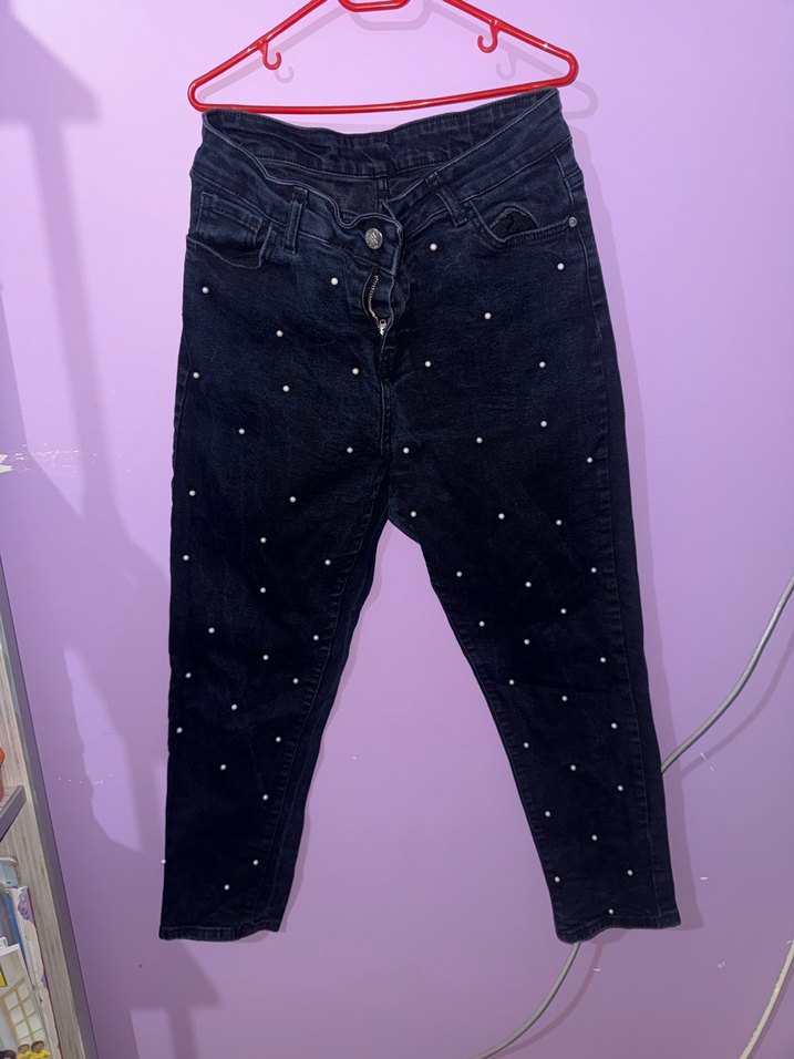 Düğmeli, siyah renkli, hafif batik desenli, dar kesim kadın kot pantolonu, günlük rahat kullanım için uygundur. ✨