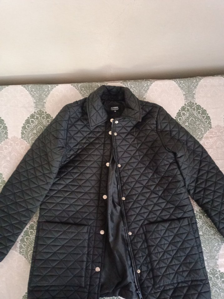 Düğmeli, uzun kollu siyah street wear ceket, notlu yaka ve normal kesim ile günlük kullanım için uygundur.