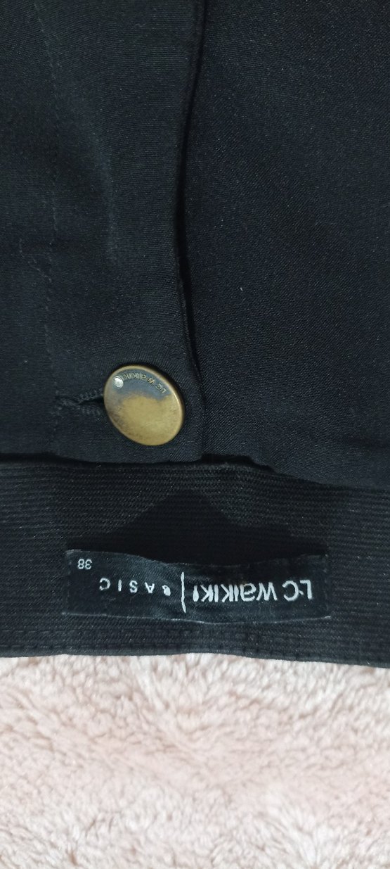 Düğmeli, siyah süet kumaştan yapılmış, uzun kollu ve yakası kesimli bu kadın ceketi, midi boyda ve dar kesimdir. Günlük kullanım için uygun, desen içermeyen şık bir modeldir. Az kullanılmış iş görür