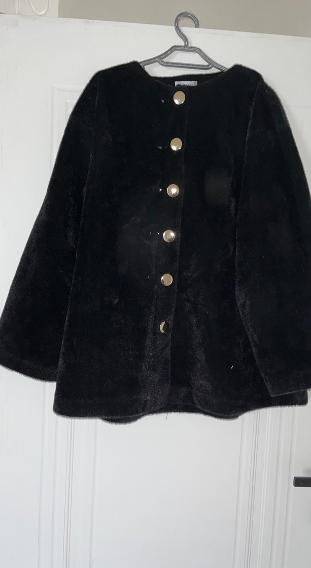 Düğmeli, uzun kollu siyah. Yumuşak süet kumaştan, notlu yakalı 1 kez giyildi