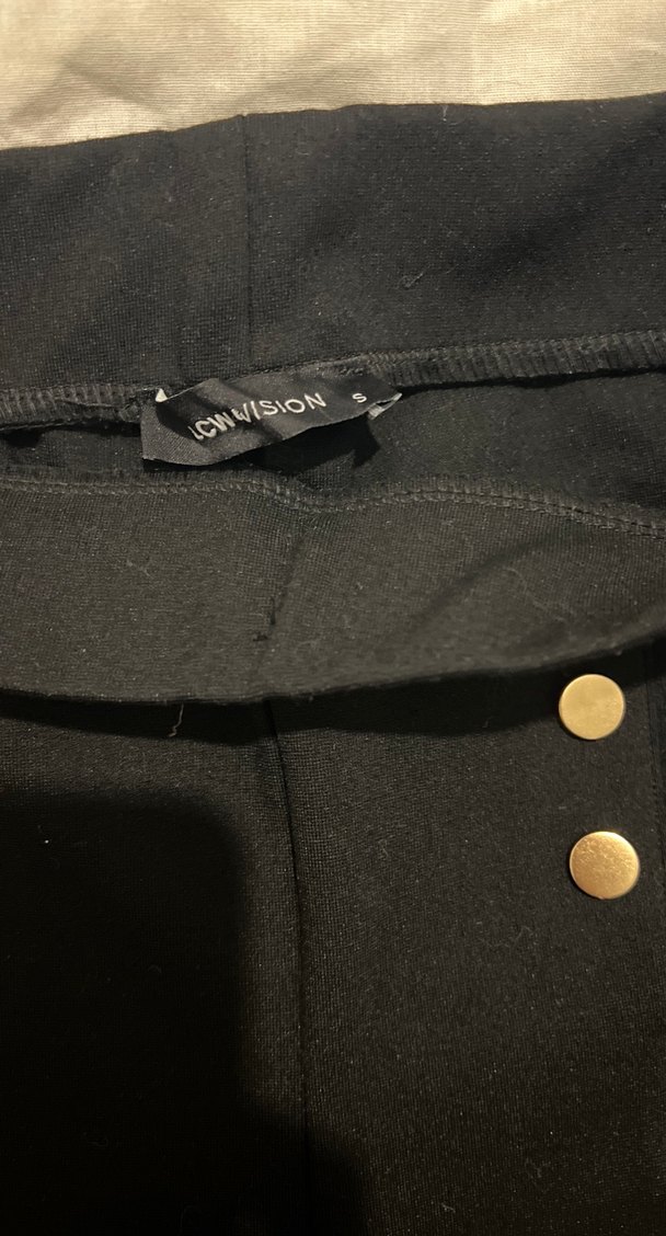 Düğmeli, siyah süet kumaştan, midi boy ve dar kesim kadın pantolon. Günlük kullanıma uygun, sade ve iş stilinde, CWWISION markalı.
