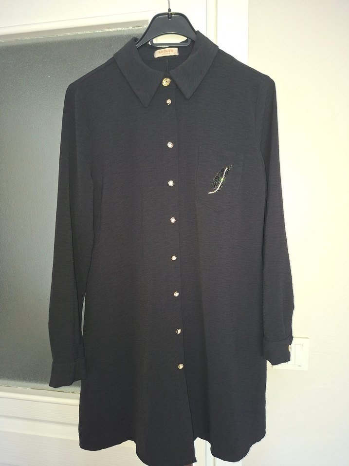 Düğmeli Siyah kadın tunik gomlek