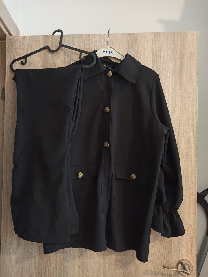 Düğmeli Siyah Kadın Uzun Ceket Takımı