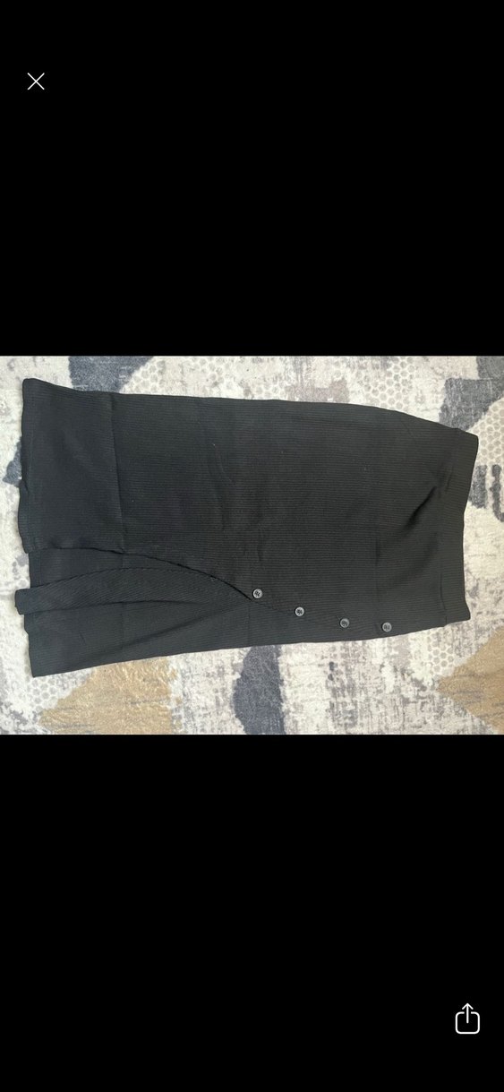 Düğmeli detaylara sahip, yumuşak sentetik kumaştan üretilmiş, siyah ve vücuda oturan kadın uzun eteği, günlük sokak stili için uygundur.