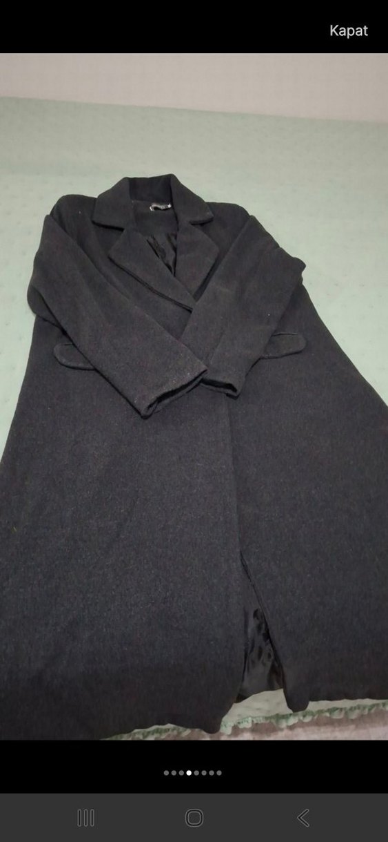 Kadınlar için siyah uzun kaban, düğmeli ve kesik yakalıdır. Yumuşak, sıcak kumaştan yapılmış, bol kesim ve uzun kolludur. Günlük kullanıma uygundur. Bir düğmesi eksik