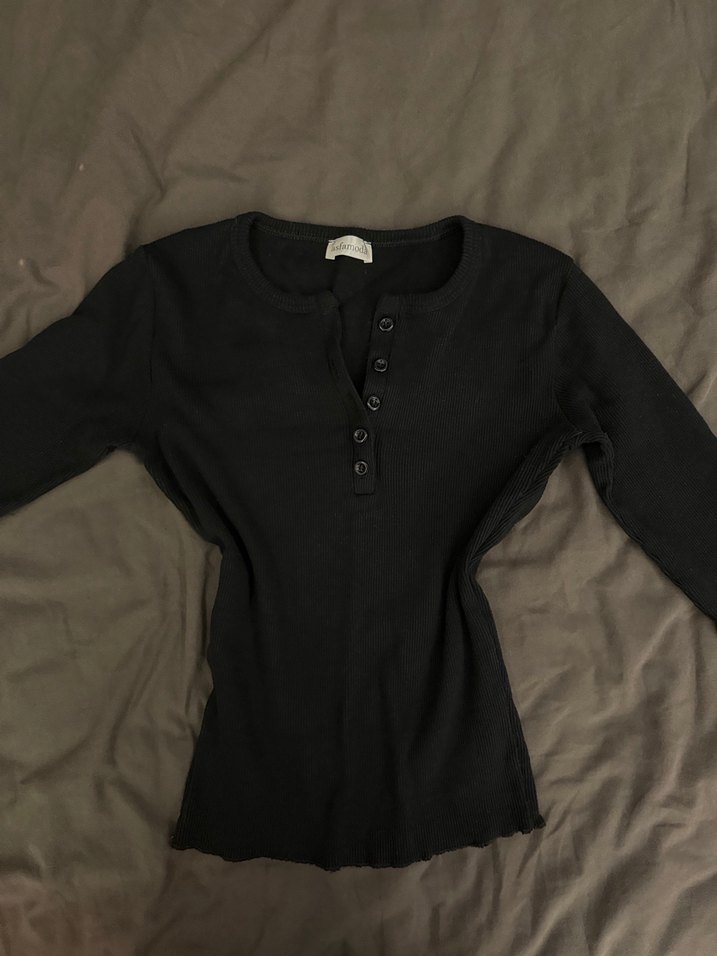 Siyah , düğmeli, uzun kollu, bisiklet yaka, normal midi uzunlukta, sade gotik tarzda kadın tişörtü.