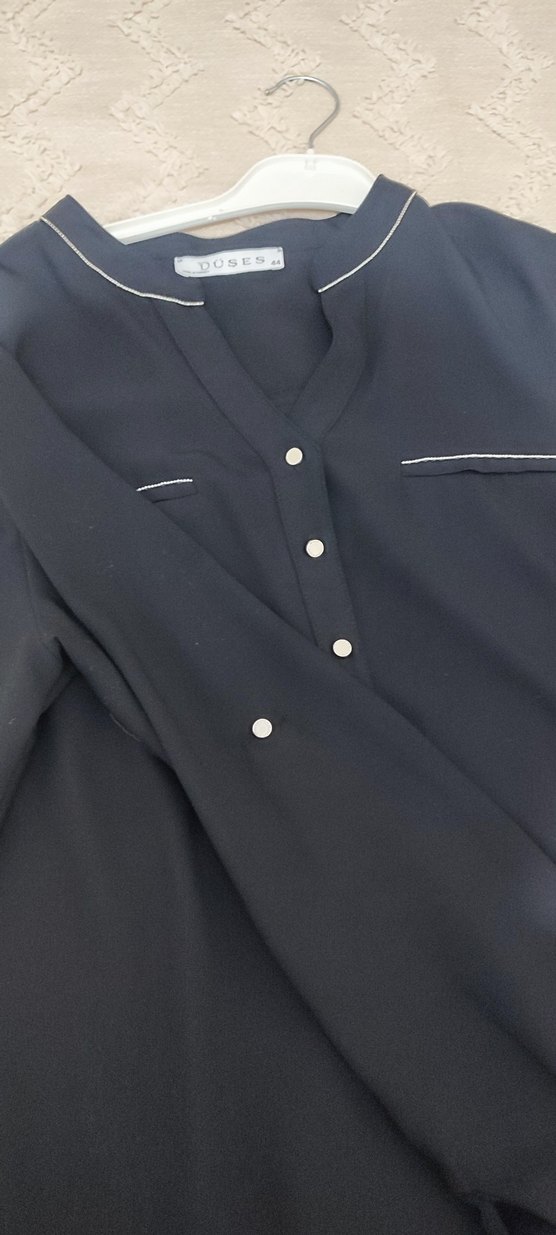 Düğmeli Siyah Kadın V Yaka Gömlek dökümlü kumaş 40 beden - Görsel 1