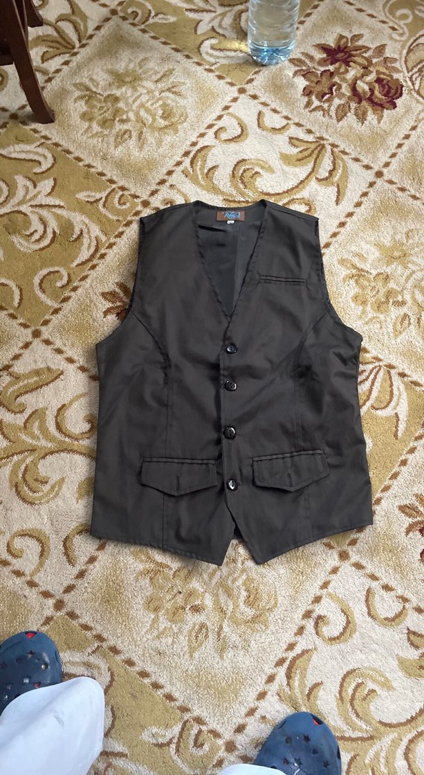 Siyah renkte, düğmeli ve yakalı kolsuz kadın yelek. Sentetik kumaştan, midi boyda ve rahat kesim, günlük sokak stili için uygundur.