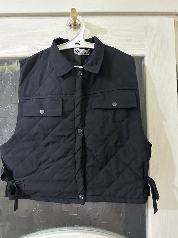 Birkaç defa anca kullandım makineye atıp yıkadığım için düğmelerinde fotoğrafta belirttiğim gibi minik bi soyulmalar var başka hiçbir sıkıntısı yok kenarlarında şık fiyonkları var L bedene uyumludur
