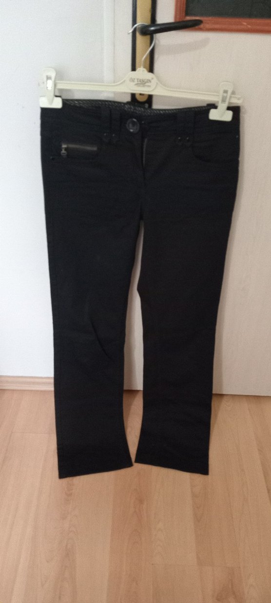 Düğmeli Siyah Kadınketen pantolon