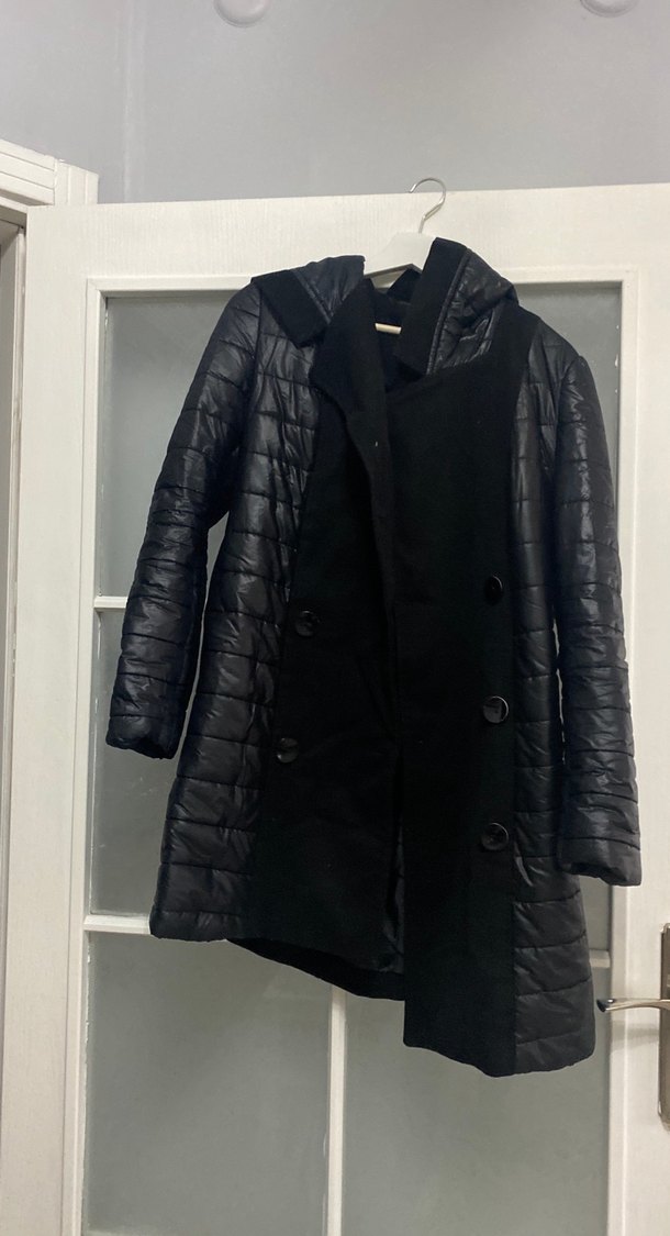 Düğmeli Siyah kapüşonlu kaban