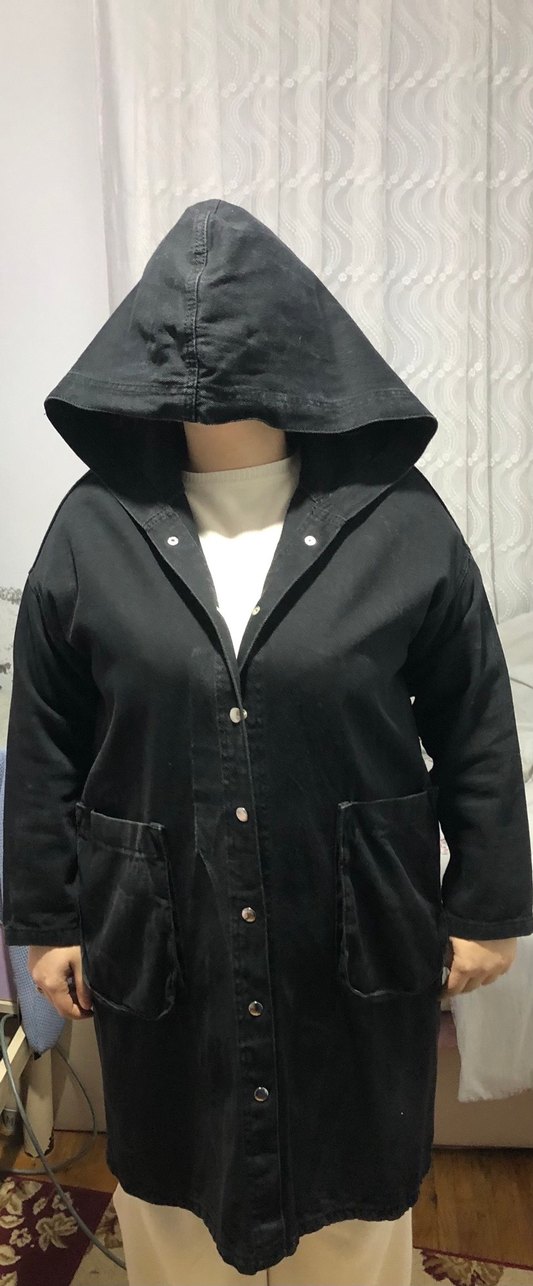 Düğmeli Siyah Kapüşonlu Kot Ceket