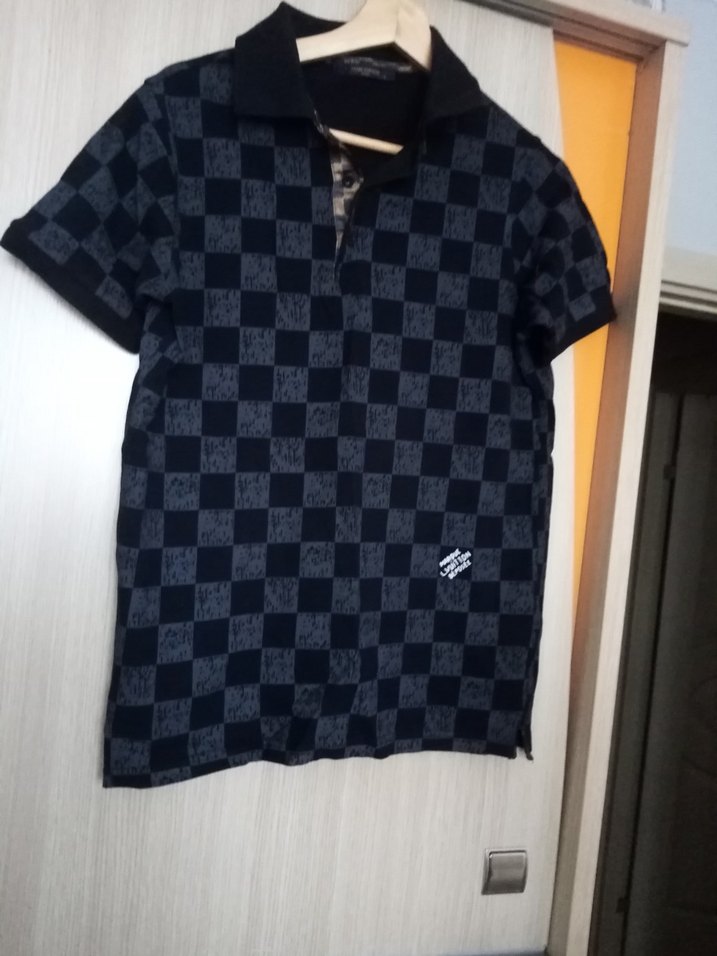 Düğmeli, V yaka, kısa kollu siyah kareli erkek polo tişört. Gevşek kesim ve sentetik kumaştan, günlük rahat kullanım için uygundur. kısa kollu kumaşları çok güzel temiz 4'ü de aynı beden bir tane fiyatı 55 toplu alınırsa yardımcı olurum kumaşın ismini unutmuşum düz kumaş değil tırtırlı böyle kumaş lacost Lacoste senin doçen'in Waikiki'nin ve Hepsi de marka İnşallah bitmiştir Elif yoruldum ya