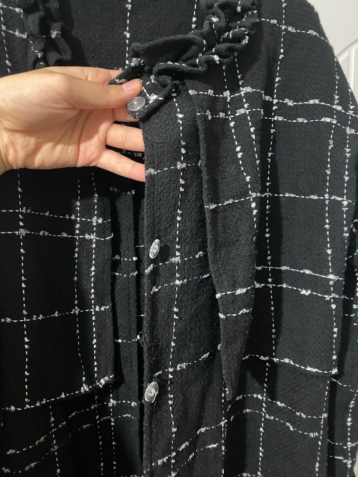 Düğmeli Siyah Kareli Midi Ceket