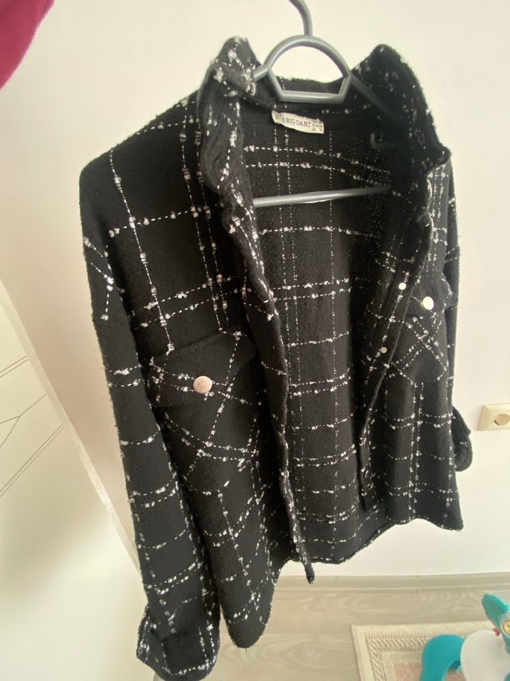 Düğmeli Siyah Kareli Midi Kadın Ceket