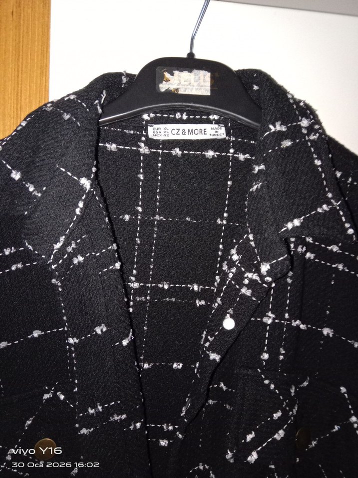 Düğmeli, siyah kareli, notched lapel yakalı ve uzun kollu midi ceket. Sentetik kumaştan, regular fit, günlük sokak stili için uygundur.