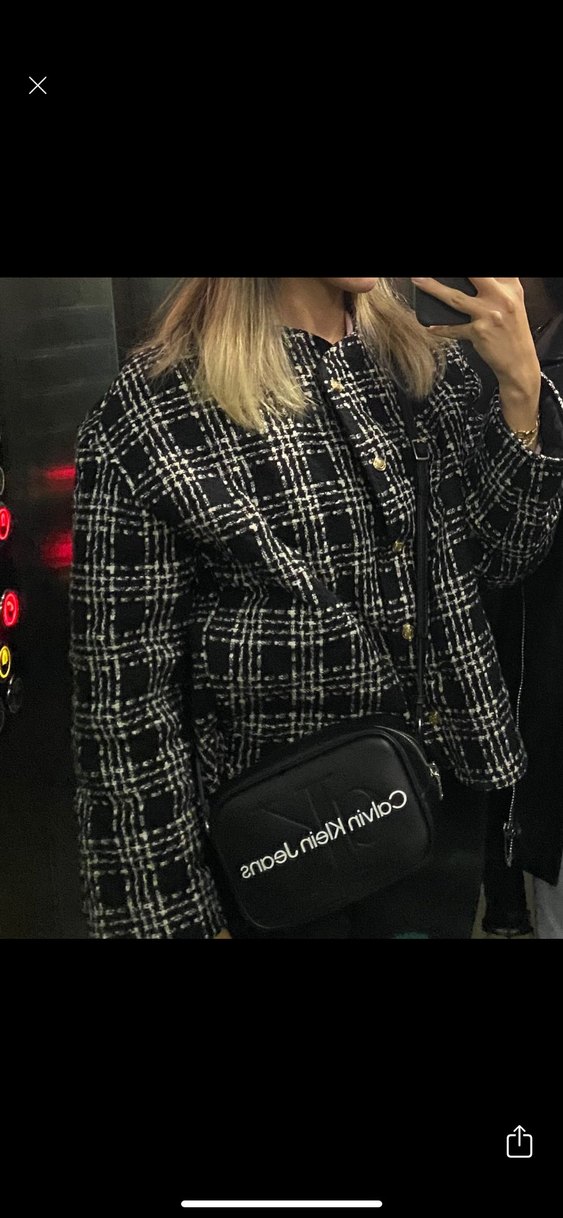 Düğmeli Siyah Kareli Mini Kadın Ceket