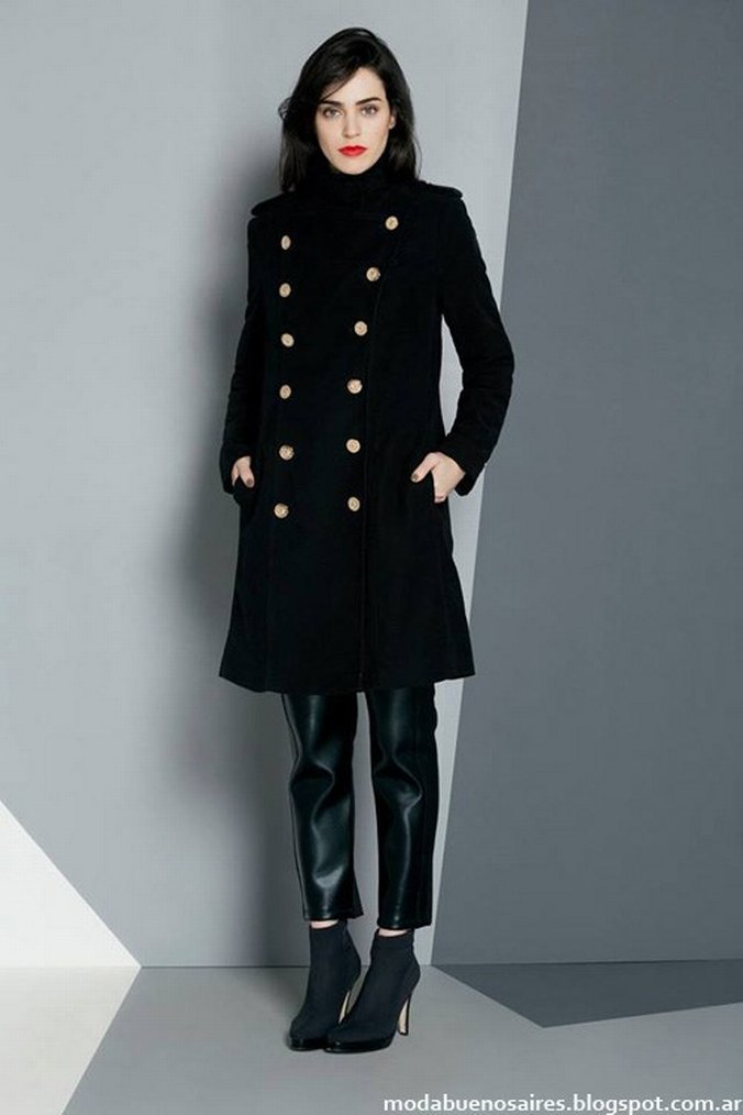 Düğmeli ve yüksek pileli yakalı siyah kaban, uzun kollu ve iki ön ceplidir. Metal düğmeli, kaşe