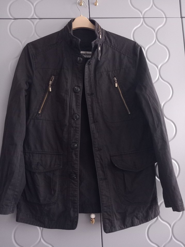 Düğmeli, siyah erkek ceket. Notlu yaka, uzun kollu, normal uzunlukta ve rahat kesim. Göğüs fermuarlı cepler ve kapaklı cepler bulunur. yıkamaya bağlı çok az renk açması olmuştur onun dışında sorunsuzdur