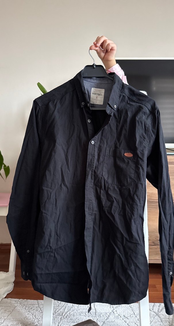 Bu erkek gömlek, uzun kollu ve düğmeli yapısıyla öne çıkar. Keten kumaştan üretilmiş, regular fit kesime ve çıtçıtlı yakaya sahiptir. Siyah renkte, desen içermeyen günlük rahat kullanıma uygundur.