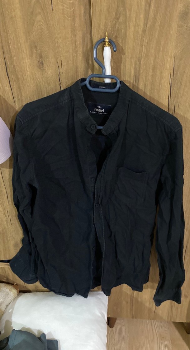 Bu siyah erkek gömlek, uzun kollu ve kesik yakalıdır. Rahat keten kumaştan, düğmeli ve regular fit kesimdedir. Günlük ve sokak tarzı için uygundur.
