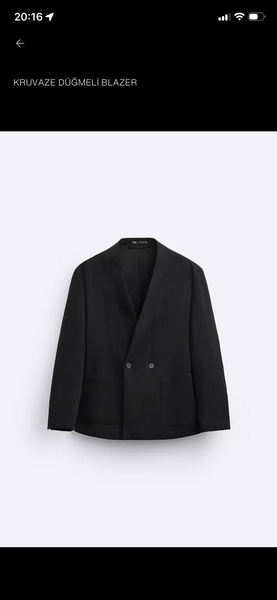 Düğmeli, keten kumaştan siyah kadın ceket. Normal kesim, yakası çentikli ve uzun kolludur. Ofis için uygun, minimal ve normcore tarzına uygundur.