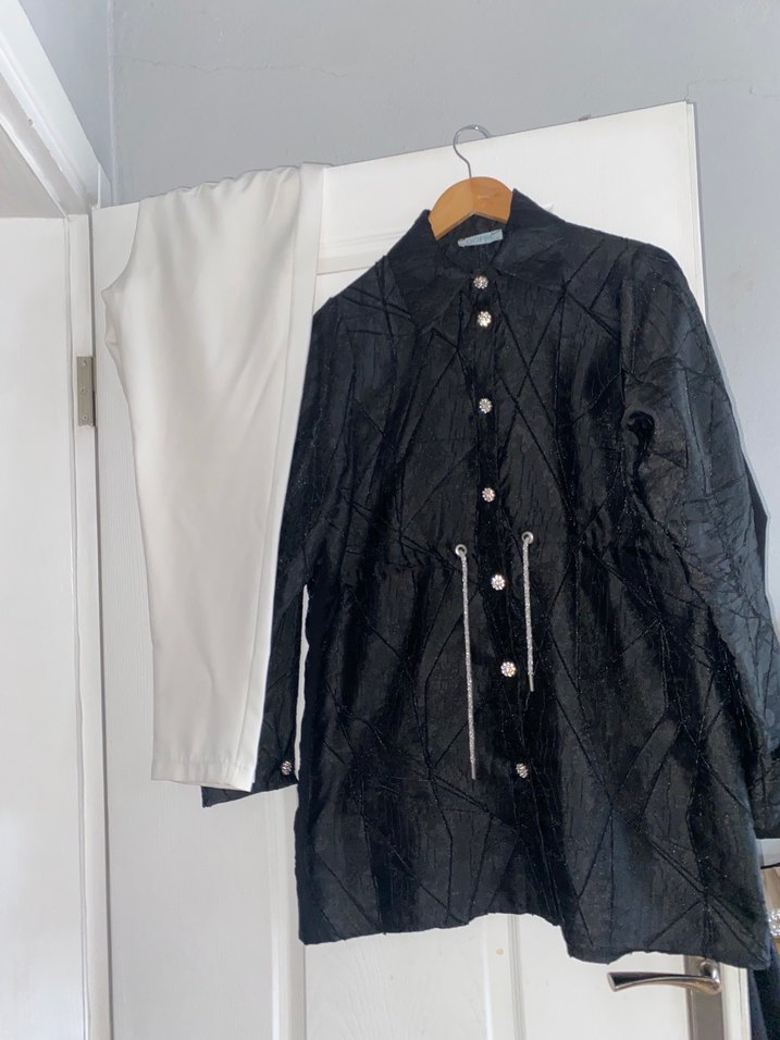 Düğmeli Siyah Keten Kadın Ceket
