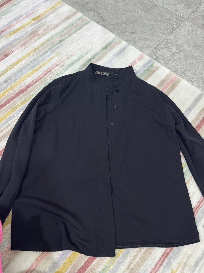 Düğmeli Siyah Keten Kadın Gömlek