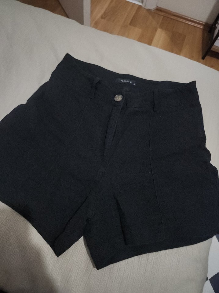 Düğmeli ve keten kumaştan üretilmiş, siyah mini şort. Rahat kesimi günlük kullanıma uygundur.